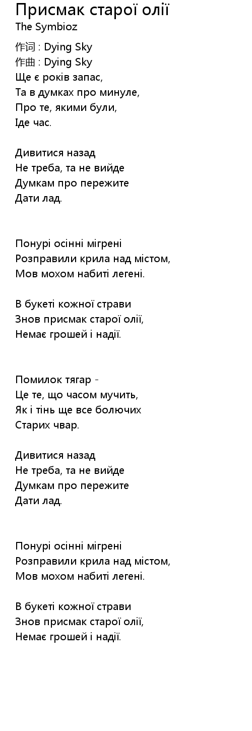 Знов присмак старої олії, |