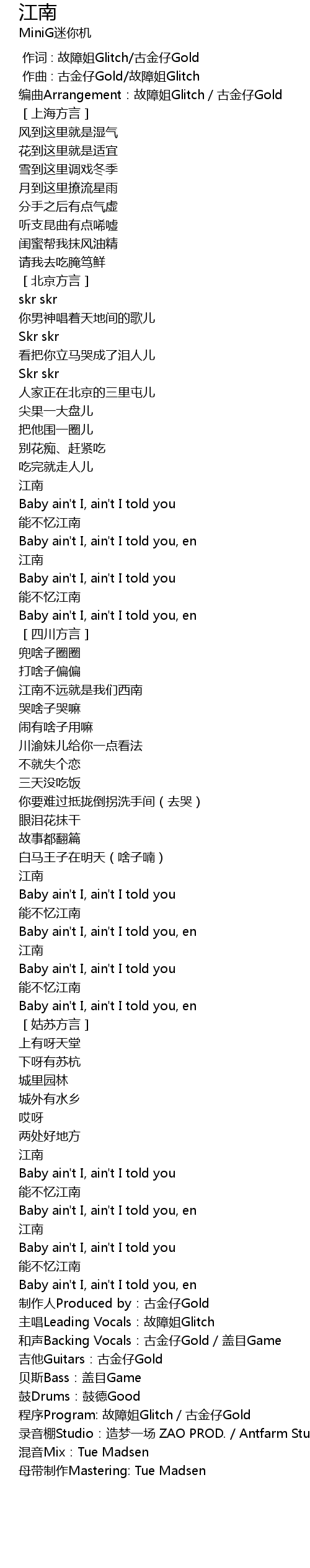 | [03:54.864] | zhì zuò rén Produced by: gǔ jīn zǐ Gold |