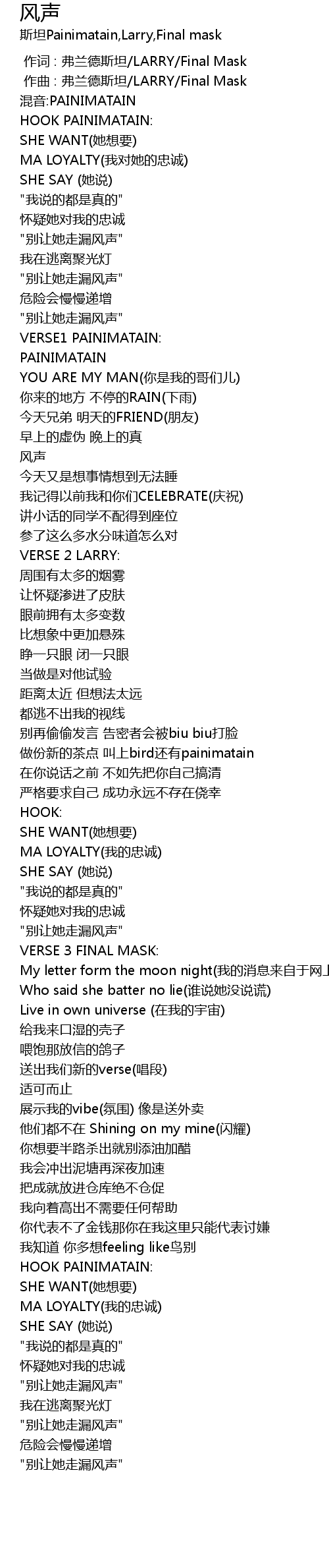 | [00:01.000] | zuò qǔ : fú lán dé sī tǎn LARRY Final Mask |