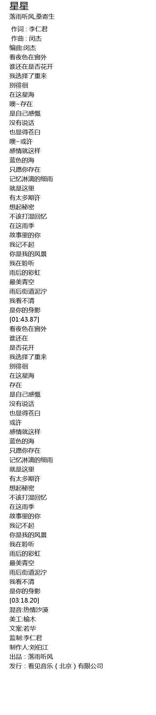 | [03:23.74] | 发行:看见音乐(北京)有限公司 |