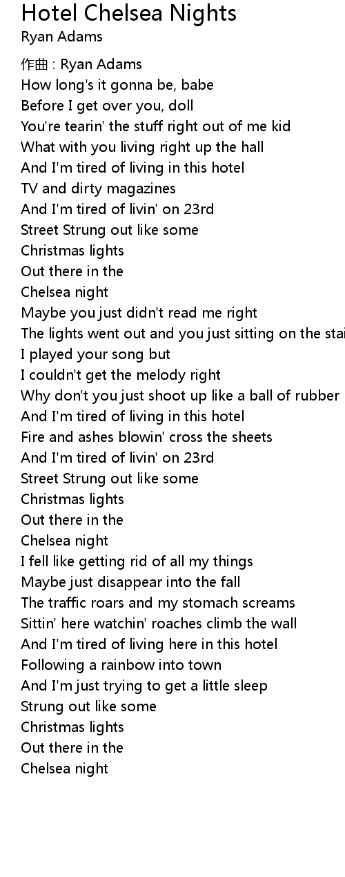 | Song | Hotel Chelsea Nights |