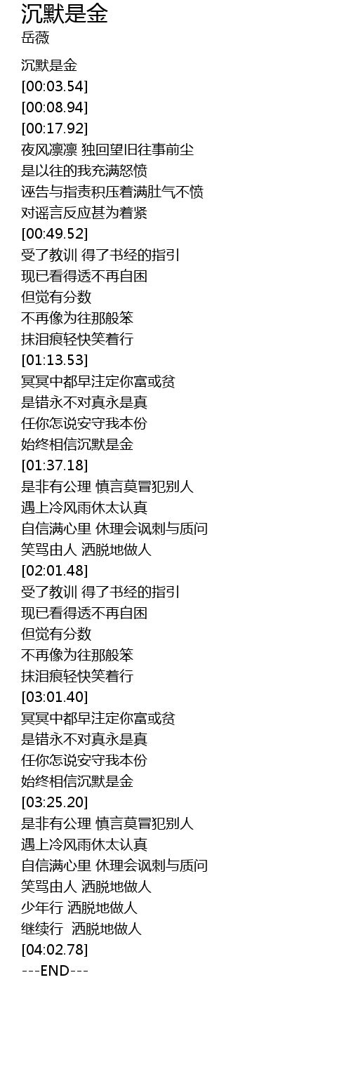 | [00:00.00] | 沉默是金 |
