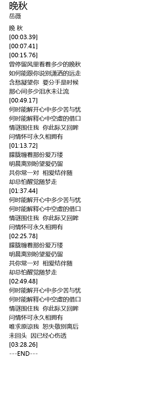 | [00:26.44] | 曾停留风里看着多少的晚秋 |