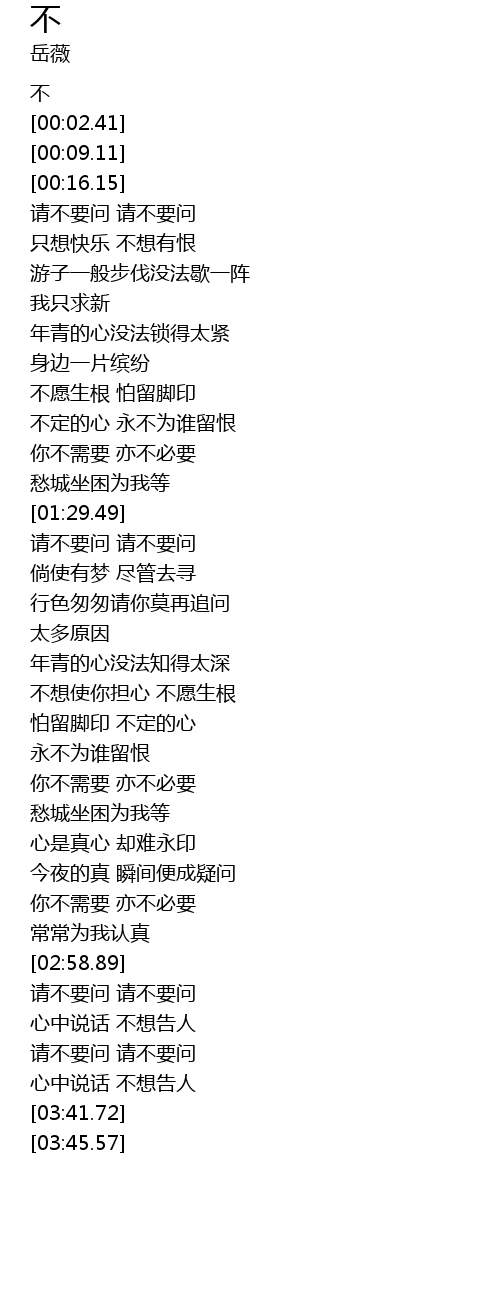 | [01:53.04] | 行色匆匆请你莫再追问 |