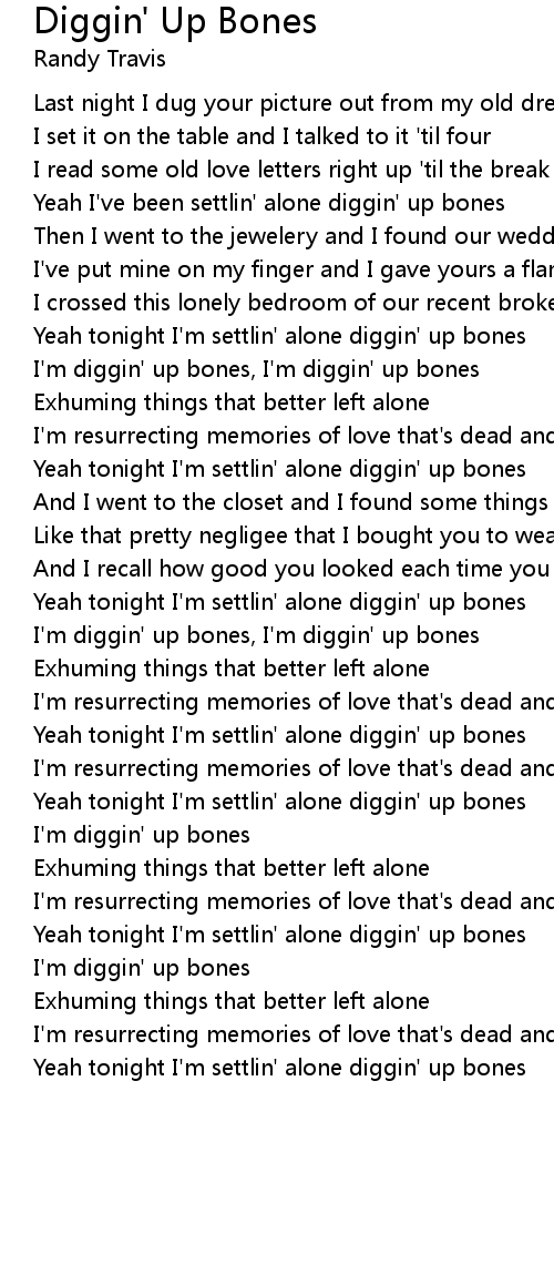 Yeah tonight I'm settlin' alone diggin' up bones |