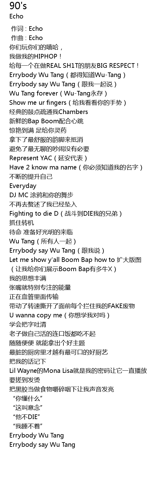 | [01:38.357] | Errybody say Wu Tang(跟我说) |