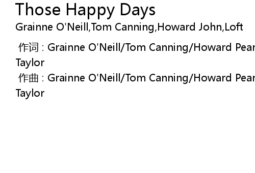 | [00:00.000] | 作词 : Grainne O'Neill/Tom Canning/Howard Pearse/Tom Loffman/Emily Taylor |