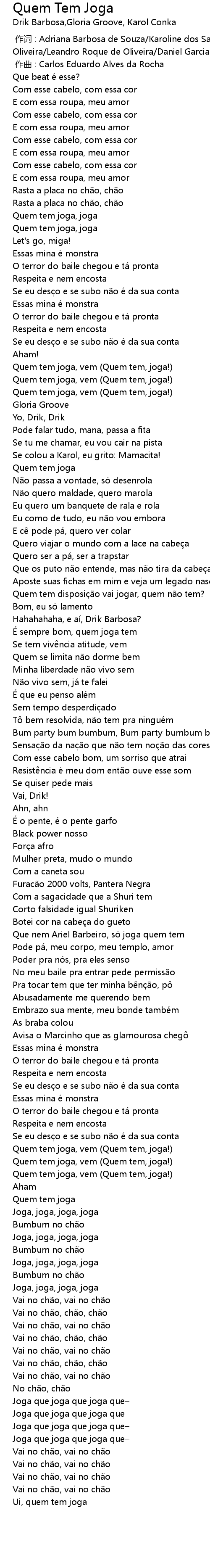 | [00:53.91] | Quem tem joga, vem (Quem tem, joga!) |