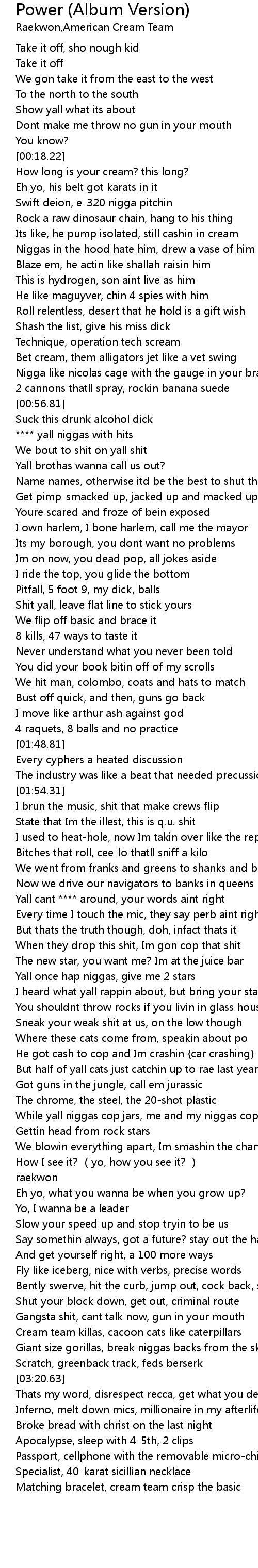 | [02:37.63] | But half of yall cats just catchin up to rae last year |