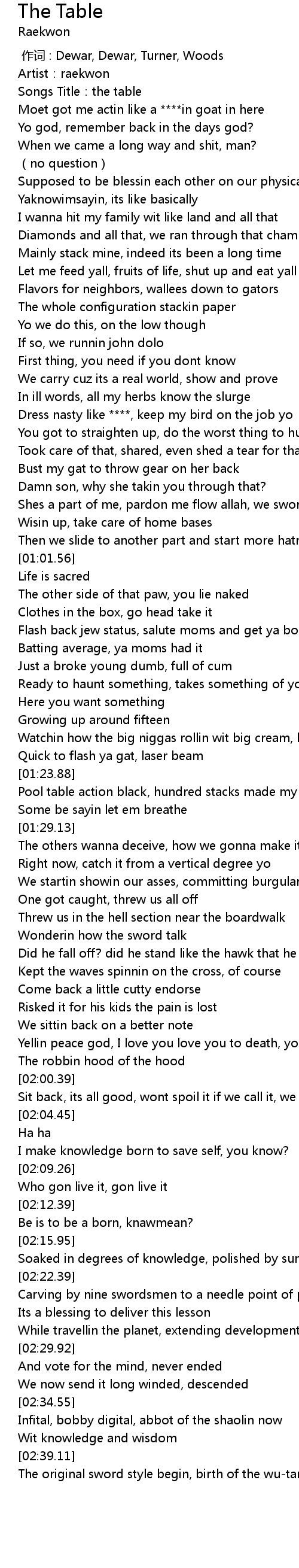 | [00:00.51] | Artist:raekwon |