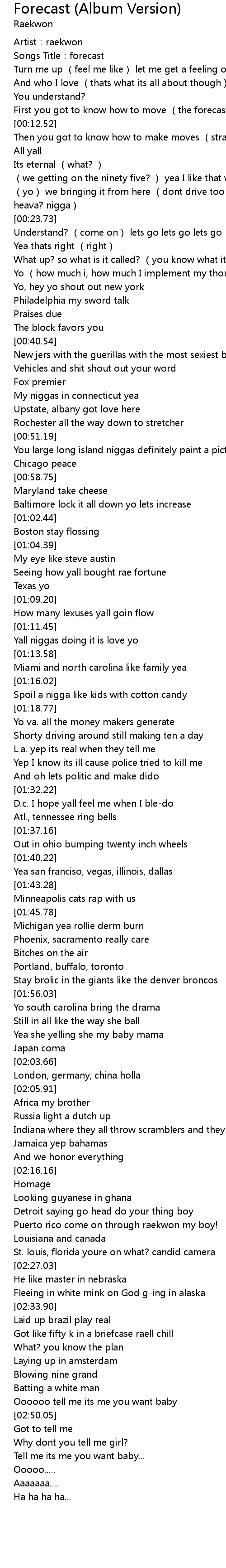 | [00:00.77] | Artist: raekwon |