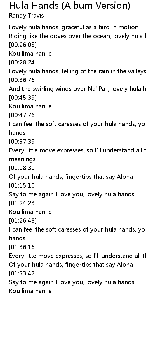 I can feel the soft caresses of your hula hands, your lovely hula hands |