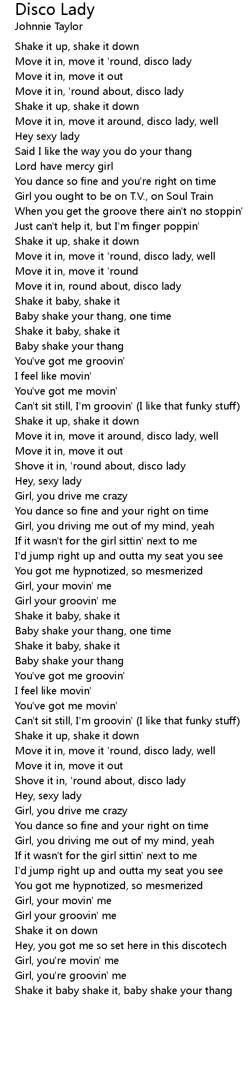 Move it in, round about, disco lady |