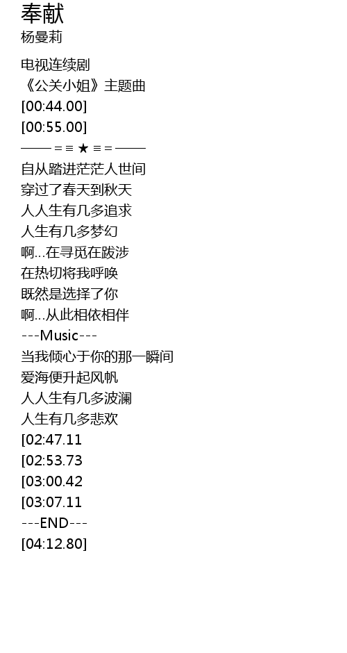 | [00:33.00] | 《公关小姐》主题曲 |