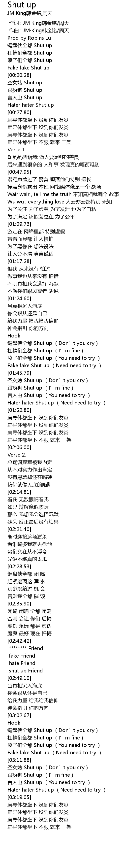 | [01:41.52] | 杠精们全都 Shut up (I’m fine) |