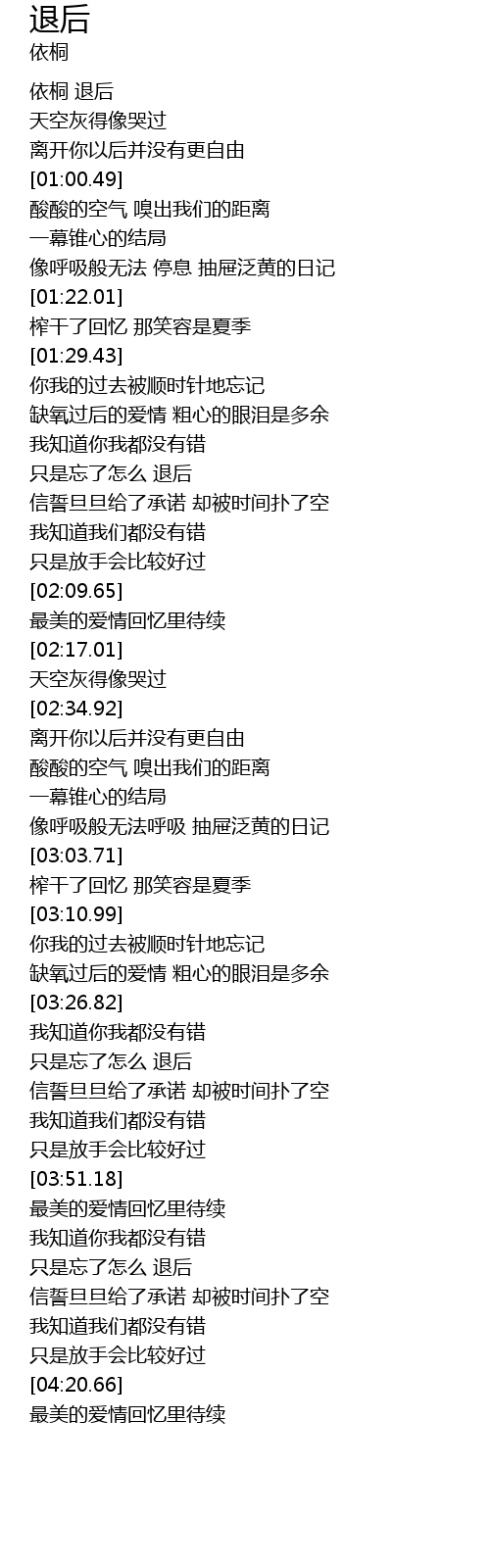 | [00:01.09] | 依桐 退后 |