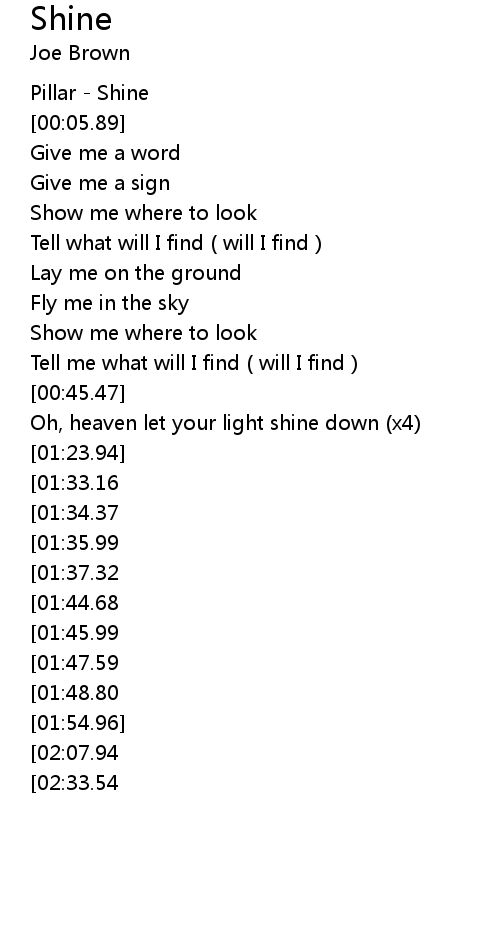 | [00:58.60] | Oh, heaven let your light shine down (x4) |