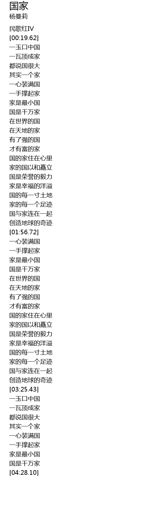 | [01:26.04] | 国的家住在心里 |