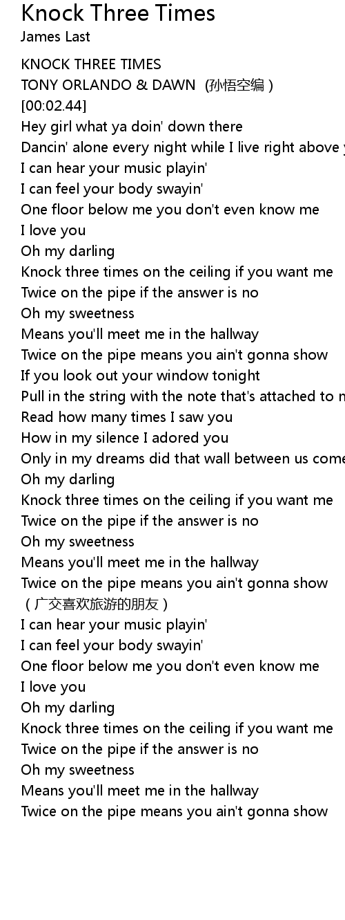 | [00:00.96] | KNOCK THREE TIMES |