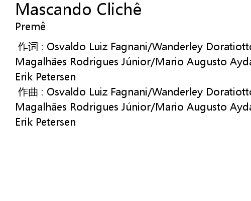 | [00:00.000] | 作词 : Osvaldo Luiz Fagnani/Wanderley Doratiotto/Azael de Magalhães Rodrigues Júnior/Mario Augusto Aydar/Antonio Marcelo Galbetti/Claus Erik Petersen |