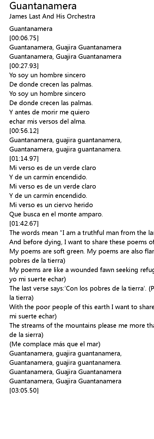 | [02:57.17] | Guantanamera, Guajira Guantanamera |