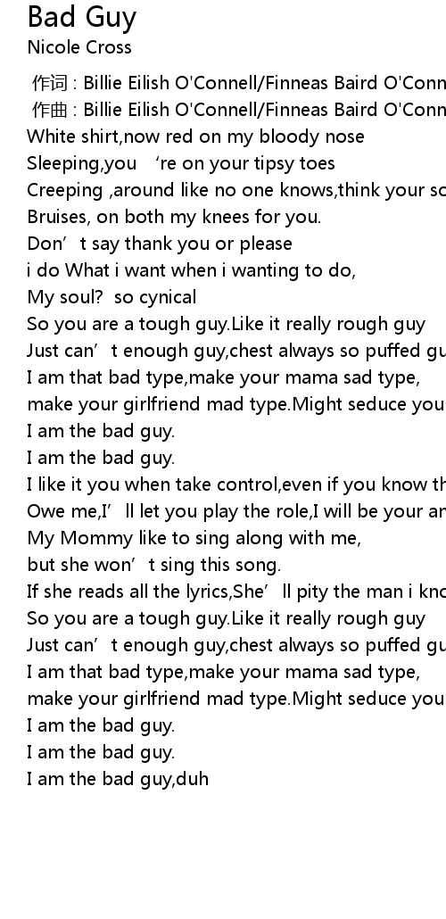 | [00:49.62] | I am that bad type,make your mama sad type, |