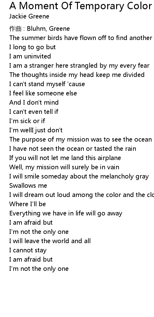 | Song | A Moment Of Temporary Color |