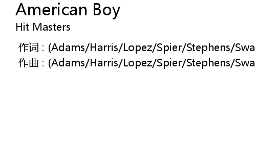| [00:00.000] | 作曲 : (Adams/Harris/Lopez/Spier/Stephens/Swara/Washington/WEST |