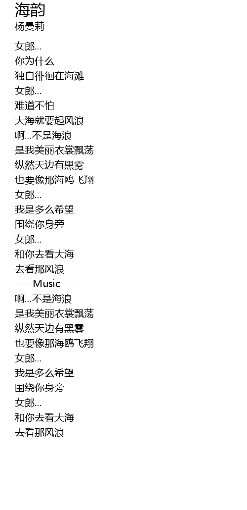 | [03:06.06] | hé nǐ qù kàn dà hǎi |