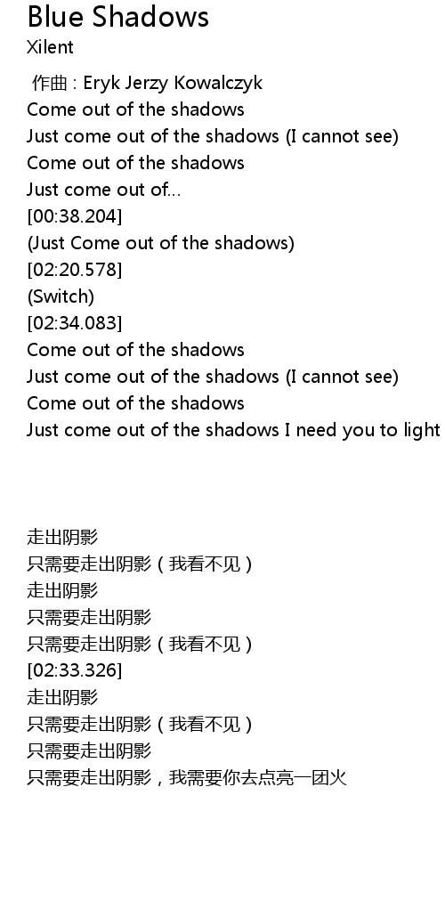 | [00:18.743] | Just come out of the shadows (I cannot see) |