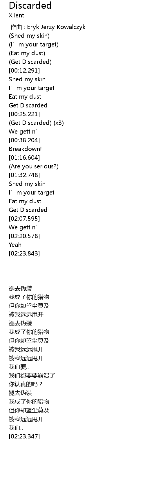 | [02:05.166] | Get Discarded |