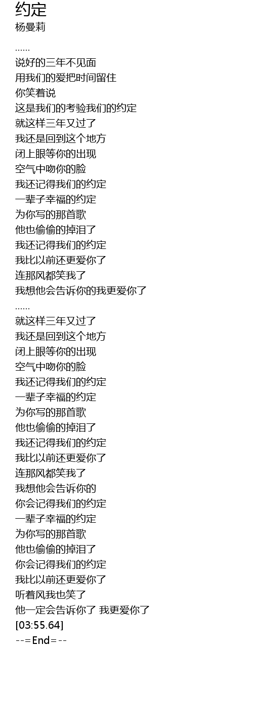| [03:29.63] | 你会记得我们的约定 |