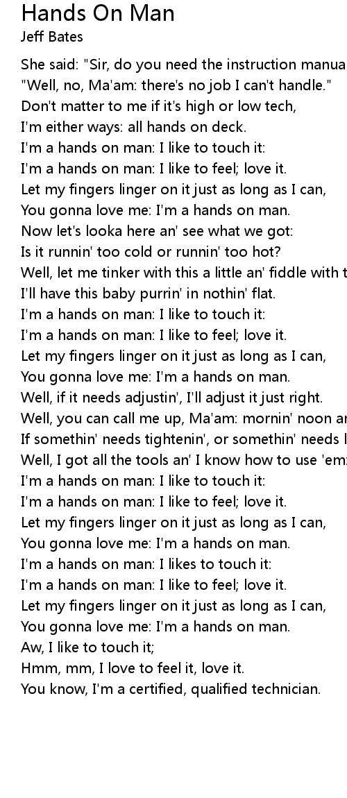 You gonna love me: I'm a hands on man. |