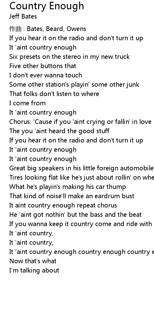 | It aint country enough repeat chorus | |