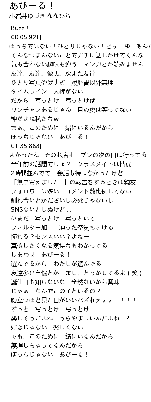 | [03:52.318] | ぼっちじゃない あぴーる! |