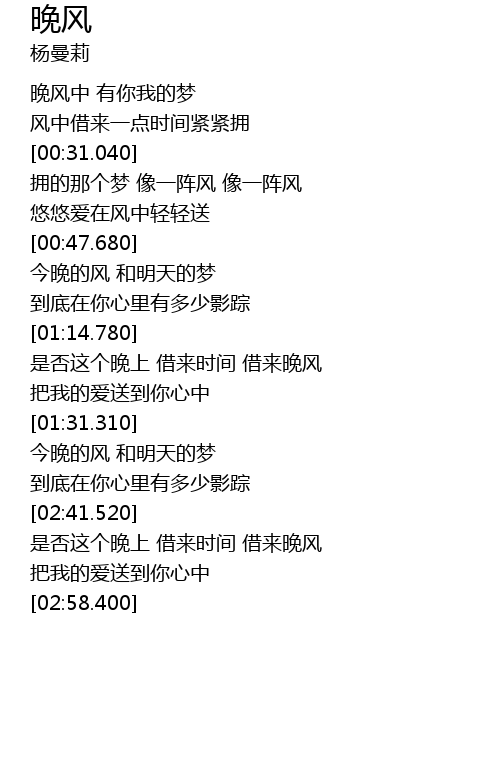 | [01:00.800] | 今晚的风 和明天的梦 |