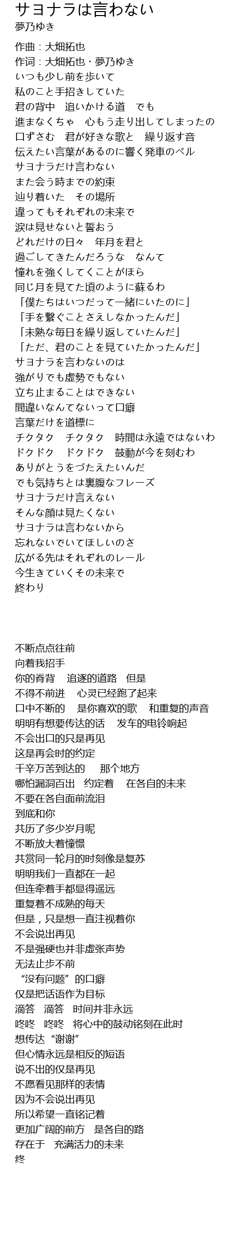 | Song | サヨナラは言わない |