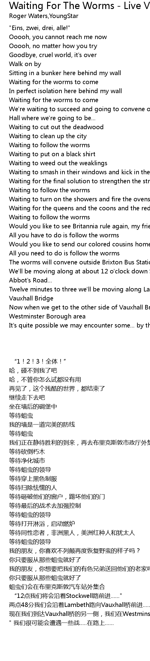 Waiting for the queens and the coons and the reds and the jews |