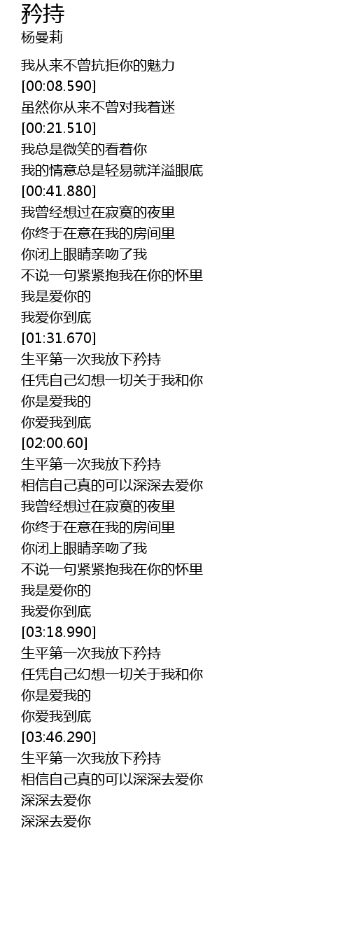 | [01:55.830] | 你爱我到底 |