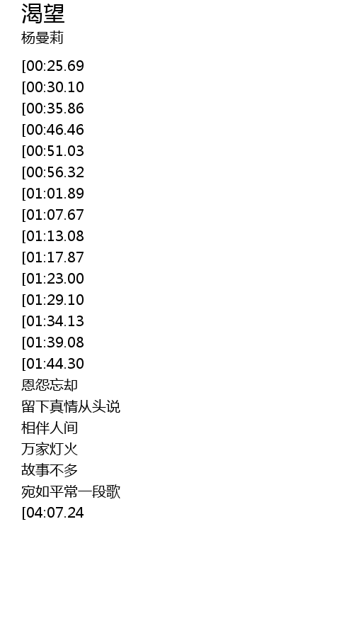 | [03:03.90][01:17.87] | 心中渴望.. |