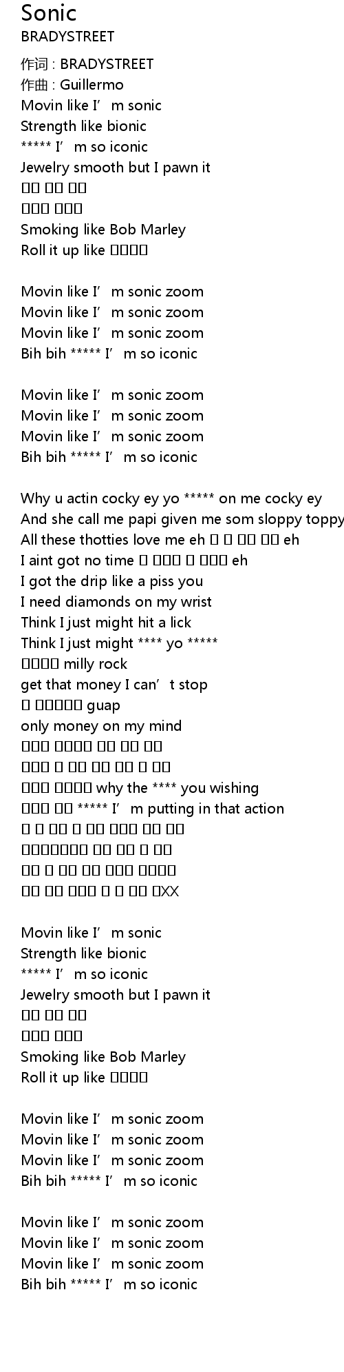| Movin like I' m sonic zoom | |