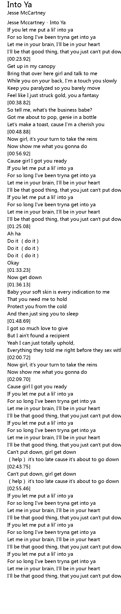 | [00:01.11] | Jesse Mccartney Into Ya |