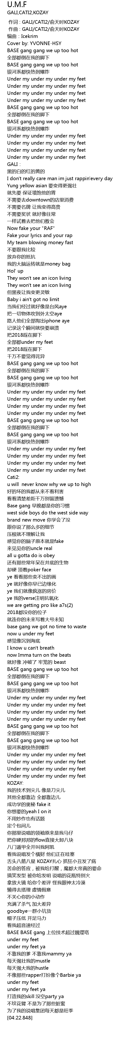 | [02:17.788] | Base gang 早晚都是你的习惯 |