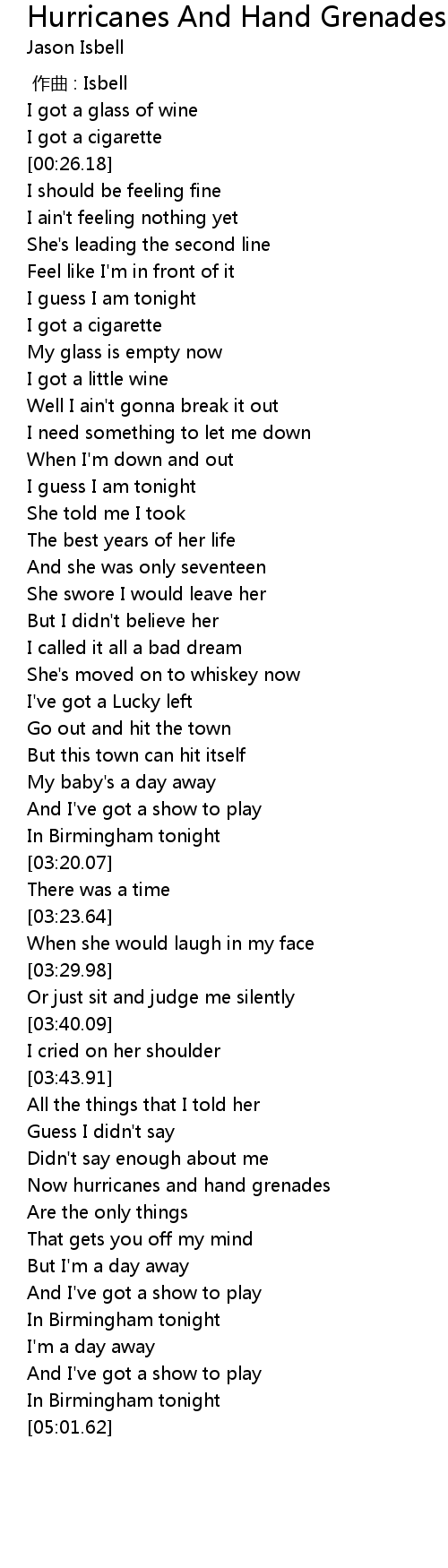 | [03:59.68] | Now hurricanes and hand grenades |