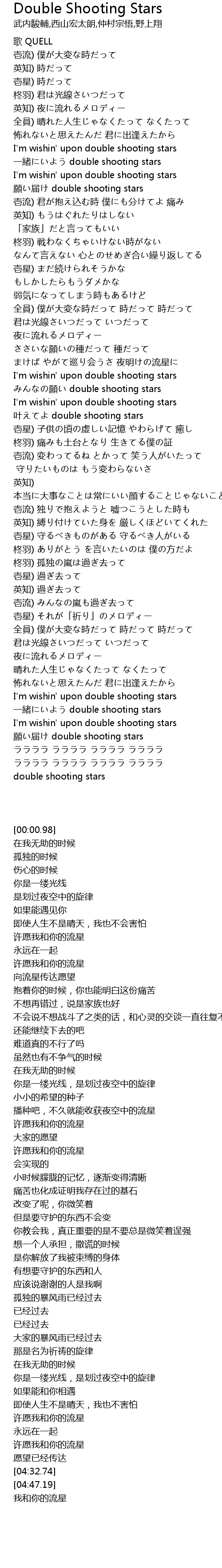 | [00:41.65] | 願い届け double shooting stars |