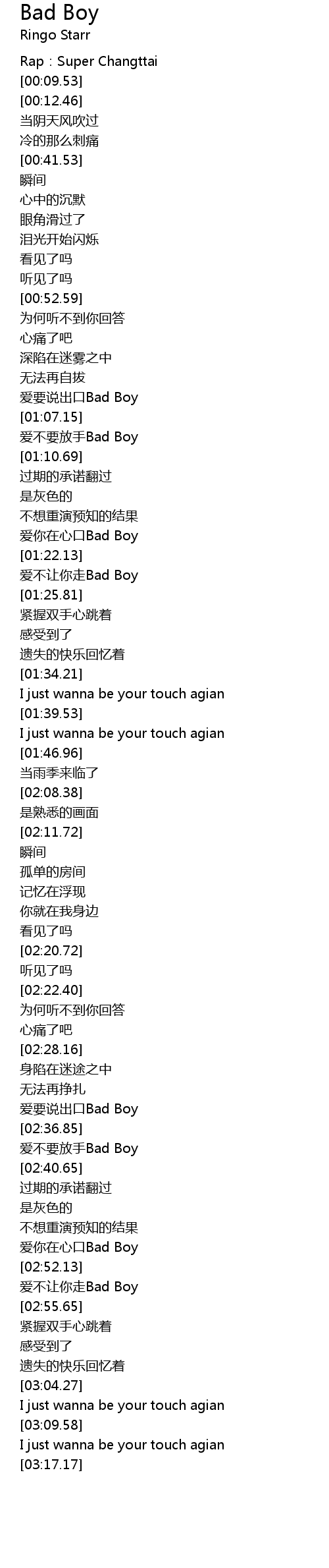 | [02:52.89] | 爱不让你走Bad Boy |