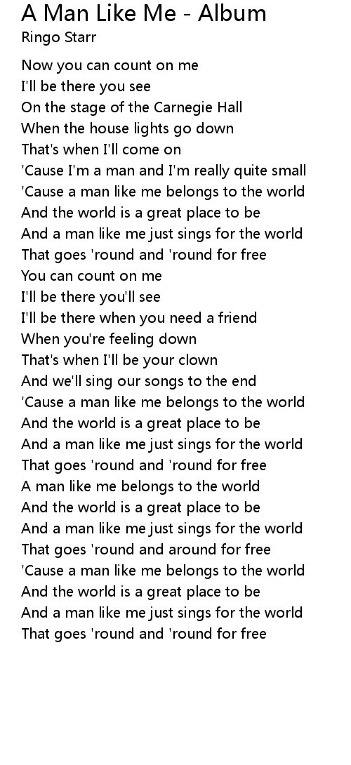 And a man like me just sings for the world |