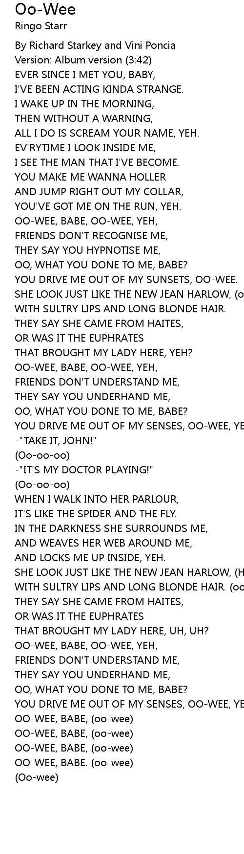 OO-WEE, BABE, OO-WEE, YEH, |