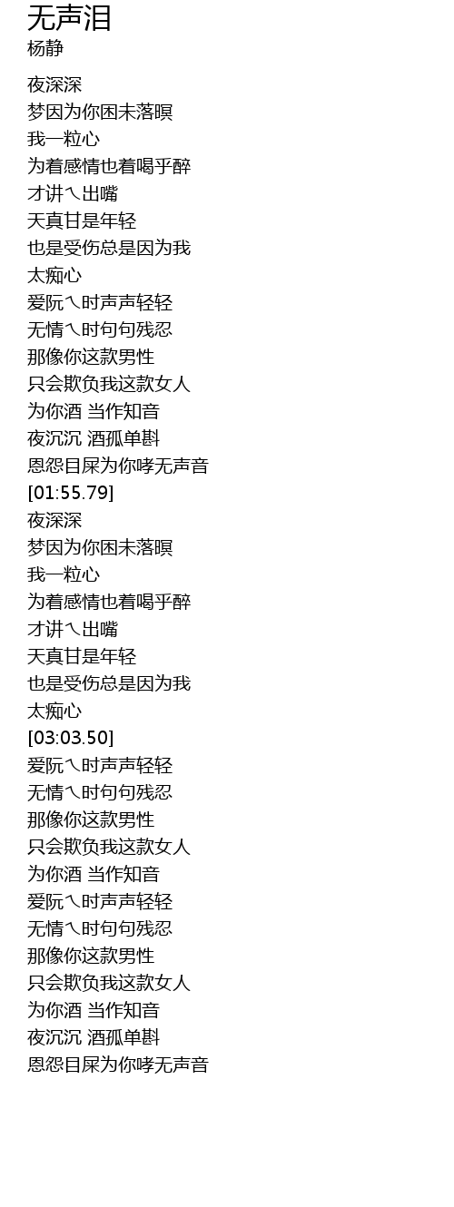 | [01:45.16] | 恩怨目屎为你哮无声音 |