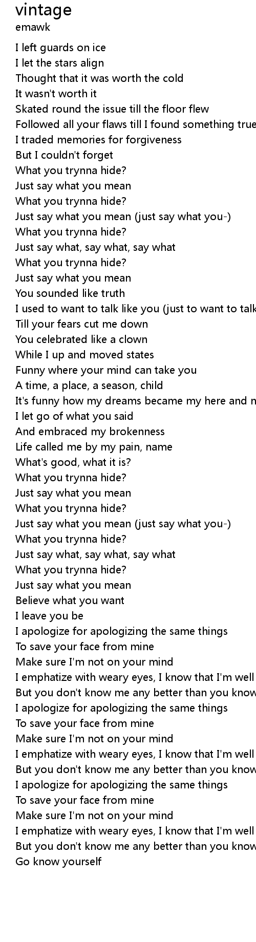 | [02:04.32] | Just say what you mean (just say what you-) |